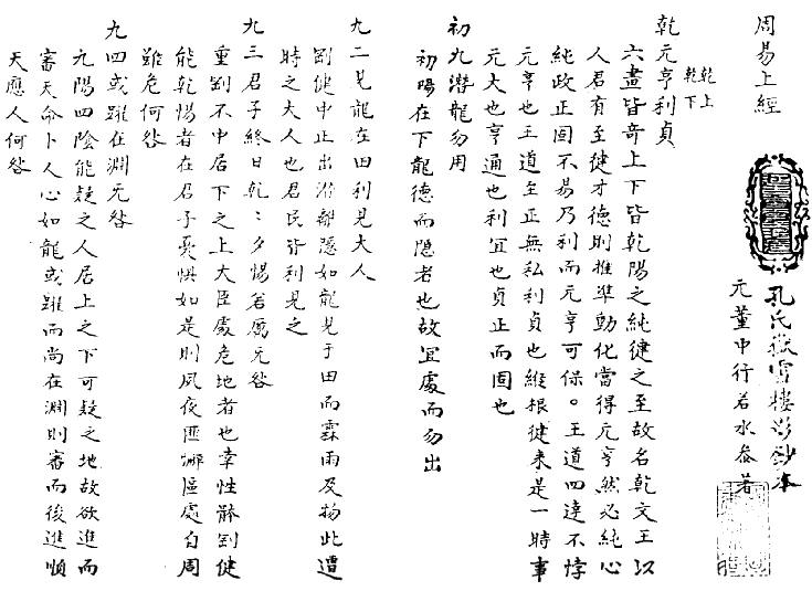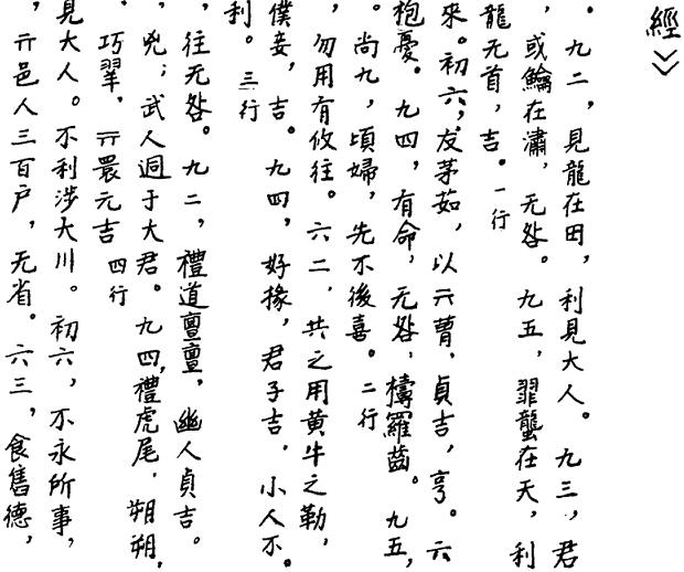 《周易》乾、坤兩卦之下的文字比其他各卦都多,也正說明了這兩卦的重要。乾卦內容如下:
