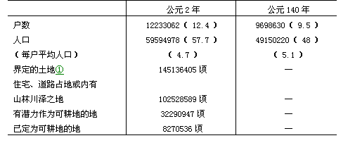 [6] 這些數(shù)字見《漢書》卷二八下,第1640頁。《后漢書》(志)卷二三,第3533頁。表中括號里的數(shù)字是畢漢斯在《公元2年至742年時(shí)期中國的人口統(tǒng)計(jì)》第128頁糾正的以百萬為單位的數(shù)字。