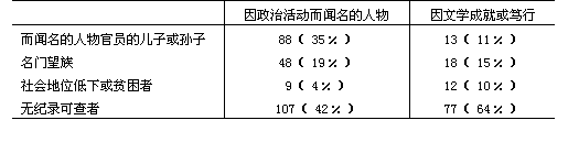 在大多數(shù)其他傳記中,沒有記載人物背景;只在少數(shù)場合,個別人物似乎出身于社會地位顯然低下的家庭,或者出身于非常貧苦的家庭,以致必須干活才能求學。甚至在120篇因學識、品德、文學才華或獨到的思想而被稱贊的人物的簡短篤行傳中,只有5篇似乎是上升到社會上層的真實范例。[23] 在這批人中和在政治上活躍的集團中,其他一些人物被描寫為窮人,特別是貧窮的孤兒,但這種貧窮常常只意味著他們必須耕種自己的田地,或者必須替別人干活,指出這一點是因為這證實了他的非凡的決心。