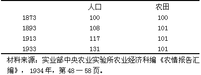 表二 1873—1933年中國農(nóng)村人口和農(nóng)田面積變化的指數(shù)