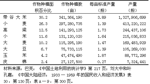 表六 1900年前后主要作物的年估計產(chǎn)量