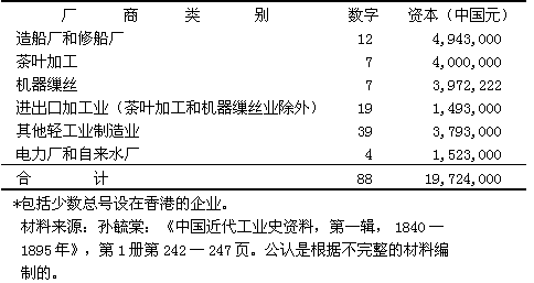 表十 1894年外資工業(yè)在中國的估計(jì)數(shù)和資本