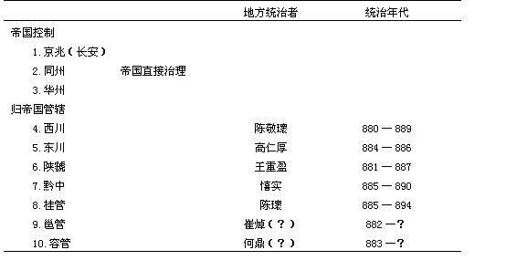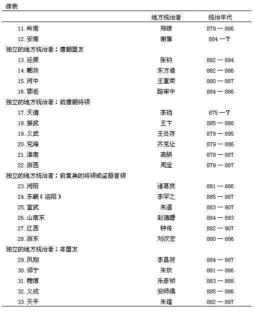 表11 黃巢叛亂后的權(quán)力分配(885年)