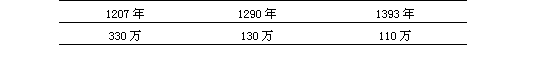 服的著作認(rèn)為1393年的實(shí)際人口要更多一些,這部書(shū)還指出在進(jìn)行人口登記的時(shí)候,首先考慮的是財(cái)政收入,所以不交稅的兒童、寡婦與年老體弱者是不必計(jì)算在內(nèi)的(若都計(jì)算在內(nèi),每戶平均人口就會(huì)多一點(diǎn)兒)。[2] 這樣,元朝1290年的數(shù)字似乎從明朝早期也就是1393年的數(shù)字得到了進(jìn)一步的確認(rèn)。