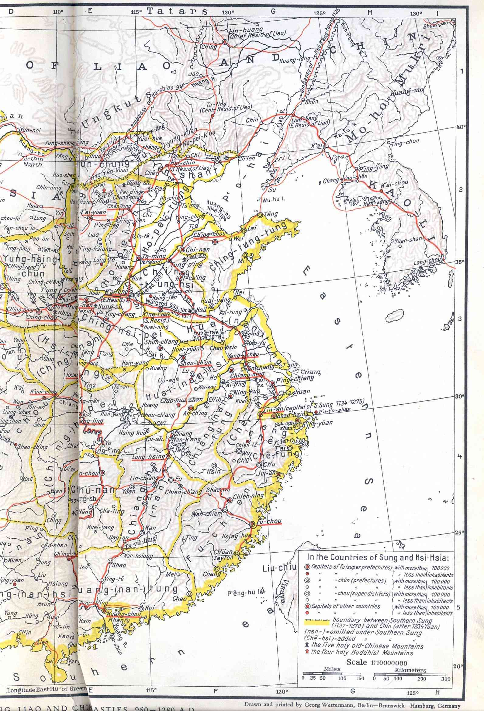 七、邊區(qū)簡圖蒙古克烈等部一幅,按公元十二世紀(jì)情況編繪,畫出部族分布和一些著名山川、聚落。西遼一幅按1154年至1164年的管轄范圍編繪,城邑除都城外酌情分作府州、縣、聚邑三級(jí)處理。
