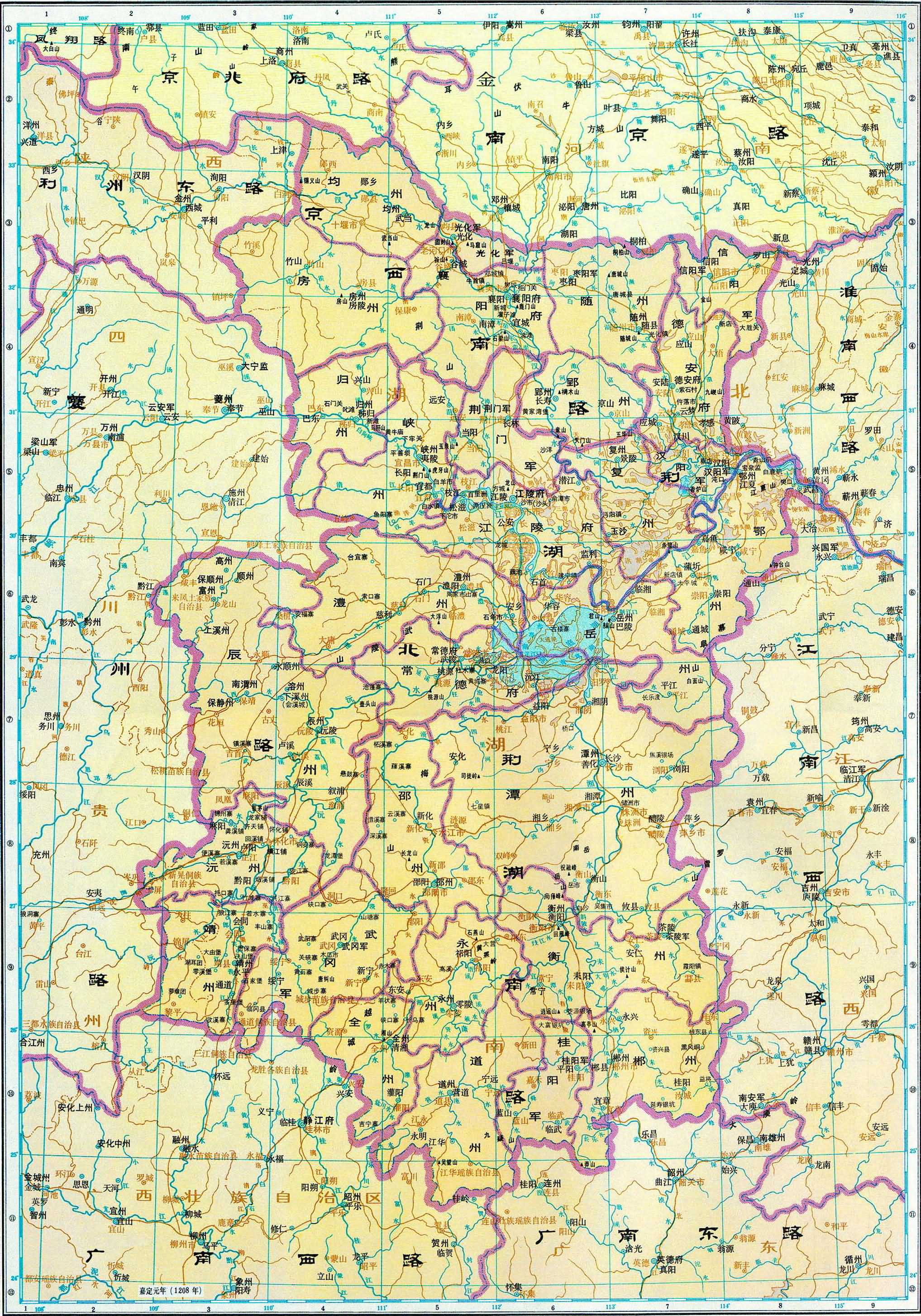猛安謀克是以女真人為主包括歸附契丹人、漢人在內(nèi)用軍事編制組成的地方行政機(jī)構(gòu);規(guī)定三百戶為一謀克,相當(dāng)于一縣,十謀克為一猛安,相當(dāng)于一防御州。此外邊境又有若干統(tǒng)轄游牧部族的部族節(jié)度使和群牧所、掌守戍邊堡的乣詳穩(wěn),分別隸屬于西北路、西南路、東北路三處招討司。圖中標(biāo)出招討司的治所,極少數(shù)有地望可指的猛安、謀克和群牧所,其他因無考只得從闕。南宋府州級(jí)及以下行政區(qū)劃設(shè)治地點(diǎn)的情況同北宋、惟院和尉司并已改縣,圖中處理方法悉同北宋。西南羈縻地區(qū)和土著部族區(qū)的情況和處理方法亦同北宋。