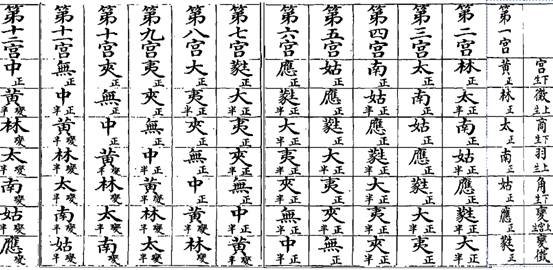 《傳 禮運》曰:"五聲六律十二管旋相為宮(《孔氏正義》曰:"十二辰各自為宮,各有五聲,十二管相生之次,至中呂而吊,凡六十聲。"